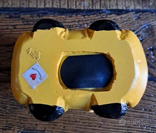 Grazioso salvadanaio a forma di macchinina realizzato in terracotta e successivamente dipinto.