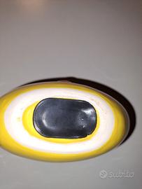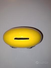 salvadanaio riutilizzabile con coperchio sotto. giallo e nero lunghezza = 11 cm altezza = 10,5 cm larghezza = 6 cm
