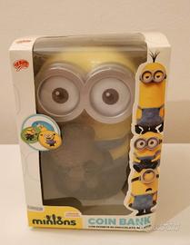 Salvadanaio Minions con confezione originale. Originariamente c'erano incluse delle monete di cioccolato, ma essendo un oggetto di qualche anno fa, non sono più presenti. Usato come salvadanaio vero e proprio è un bellissimo complemento d'arredo. Altezza del Minion circa 15 cm.