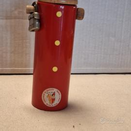 Salvadanaio in legno a forma di Pinocchio, dipinto a mano in colore rosso (tonalità caldo/rosso). Altezza: 25 cm Include lucchetto e chiavetta per chiuderlo Le monete si possono prelevare rimuovendo la testa del burattino