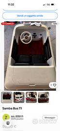 Samba Bus Tl. Samba bus elettrico 12V, 2 posti, completo di radiocomando, caricabatterie e manuale d'uso. Batteria da sostituire causa poca durata Dotato di cinture per entrambi i posti. Ritiro a domicilio, Buono stato di usura Ritiro a domicilio gratis Costi di spedizione da verificare all’incirca 40 € prodotto ingombrante