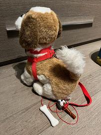 Samby Cane Interattivo, Cucciolo San Bernardo Giochi Preziosi. Cagnolino Interattivo con tre funzioni, Battendo le mani camminerà, e fermandosi, abbaierà contento, Se accarezzato sulla testa il cane si siederà abbaiando e scodinzolando felice, Facendogli indossare la pettorina e il guinzaglio e coccolandolo sui fianchi, farà tante feste