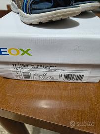 Sandali Geox in ottime condizioni, perfetti per l'estate. Taglia 27. - Colore marrone e blu - Chiusura a velcro - Logo Geox stampato sui cinturini - Scatola originale