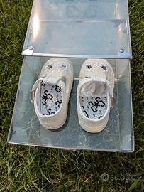 Sandali con punta chiusa, con fibbia laterale, paiettes bianchi, nuovi con scatola originale, numero 20, marca 2star. Prezzo scatola 99 euro.