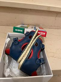 I sandali per bambino, marca AVERIS, taglia 22, colore blu scuro/rosso. Molto comodo di indossare. Usato per una stagione e rimane abbastanza in buone condizioni nonostante la suola delli sandali macchiata scura.
