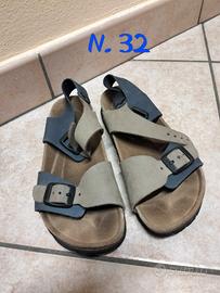 Sandali bambino Birkenstock colore blu jeans, numero 31 Sandali bambino Grünland colore blu e beige, numero 32 Vendibili anche separatamente. Il prezzo si intende cadauno