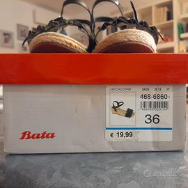 Sandali Bata bambina con zeppa in corda n. 36 nero