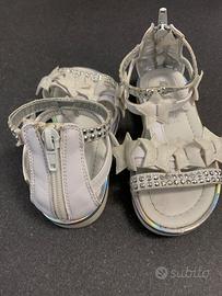 Vendo sandaletto da bambina marca Asso in vera pelle bianco glitterato con stelline e strass. Pari al nuovo, usato una sola volta per una cerimonia. Taglua 27.