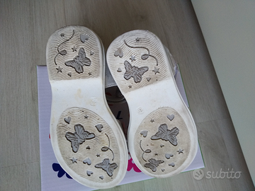 Sandali bimba, di ottima fattura, n. 23, colore bianco con fiorellini rosa