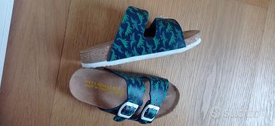🦖 Sandali bimbo n.28 – Fantasia dinosauri – Vera pelle Vendo sandali, numero 28, in ottime condizioni. Comodi, resistenti e con una fantasia dinosauri che i bambini adorano. ⭐ Caratteristiche tecniche Marca: Pittarello Numero: 28 Colore: blu con fantasia dinosauri verde Tomaia: ecopelle stampata, resistente e morbida Soletta: anatomica in vera pelle e sughero, traspirante e confortevole Suola: stile cork con base antiscivolo Chiusura: doppia fibbia regolabile (calzata perfetta) Condizione: ottimo stato, usura minima Prezzo originale: 30 € 🎯 Benefici per il tuo bimbo Fantasia dinosauri che invoglia a indossarle Soletta anatomica che sostiene bene il piede Materiali di qualità che non irritano Perfette per l’estate: leggere, traspiranti e sicure 💰 Prezzo 9 € (oltre 70% di risparmio rispetto al nuovo) Ottime per chi cerca sandali di qualità senza spendere troppo.