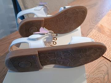Sandali "Florens" in vera nappa bianca da bambina n.30 con applicazione fiorellini colorati in pelle. Calzati solo una volta e rimessi nella propria scatola