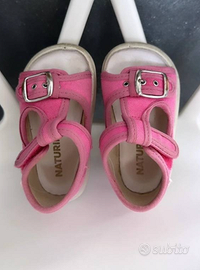 Sandali Naturino in tela rosa, molto comode e grazie alla loro forma proteggono i piedini dei piccoli. Complete di scatola originale, tenute con cura.