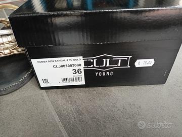 Sandali oro CULT, n.36, usati poco, ottimo stato, con doppio cinturino alla caviglia. Suola in gomma decorata con brillantini.