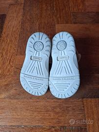 Sandali Primigi di colore argento metallizzato con chiusura a strappo in vera pelle senza parti metalliche o in Nikel in modo da prevenire ogni tipo di allergia