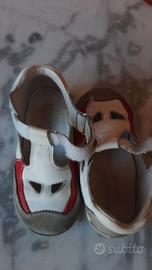 Sandalini bimba n.23 marca Falcotto Naturino bianche e rossi, di pelle e scamosciato
