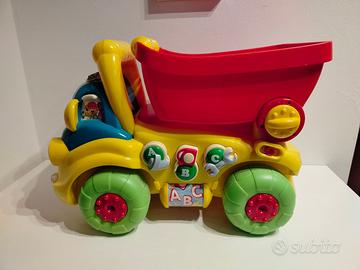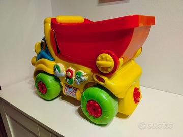 Un simpatico compagno di giochi che stimola la crescita del bambino dai 10 ai 36 mesi - Alzando il cassone posteriore è possibile sedersi sul camion oppure utilizzarlo come un pratico primi passi - Premendo 6 grandi tasti si ascoltano tante frasi divertenti e giocando s'imparano i numeri e le lettere, anche in inglese