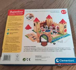 Descrizione: Bellissimo playset creativo "Sapientino - Il Castello" di Clementoni. Un gioco educativo "Play for Future" realizzato in materiali riciclati. Caratteristiche: Castello in cartone da assemblare, colorare e personalizzare. Include: Torri, tetti, ponte levatoio funzionante con ingranaggio, personaggi in cartoncino (cavaliere, principessa, drago) e manuale di istruzioni. Età consigliata: 4-7 anni. Stato: Ottime condizioni pari al nuovo