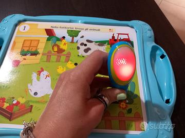 1 penna elettronica con suoni e luci, come ultime 2 foto, luce verde risposta corretta, luce rossa risposta sbagliata. PILE NON INCLUSE. da 2 a 4 anni di età.