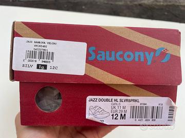 Saucony bambina Velcro taglia 29 argento glitter e rosa fluo. NUOVO - MAI USATO - perfettamente conservato in scatola originale - BELLISSIME.