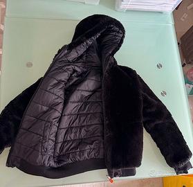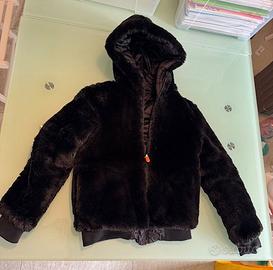 Bomber Save the Duck in eco pelliccia reversibile colore nero con cappuccio. Chiusura con zip. Taglia 8-10 anni, vestibilità comoda