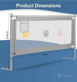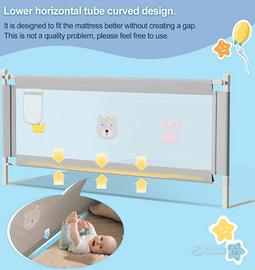 Facili da montare, adatte a diverse altezze di materasso (regolabile a piacere in 28 diversi livelli distanziati uno dall'altro da circa 1 cm), design curvo del tubo orizzontale inferiore per adattarsi meglio al materasso senza creare spazi vuoti, doppia protezione per evitare apertura da parte del bambino.