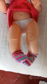 Dolcissima bambola sbrodolina con abitino raffigurante Hello Kitty, mutandine e calzine coordinate. Le palpebre sono mobili. In ottimo stato