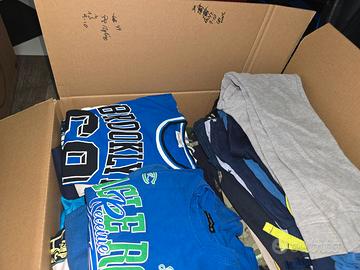 80 pezzi, 49 maglie varie e 30 pantaloni lunghi e corti, estate e inverno, brand vari per bambino.taglia 9-10 anni.
