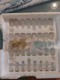 Scacchi e dama in vetro (scacchiera leggermente sbeccata sotto in un angolo, come si vede da foto) e gioco Yhatzee & Poker (mancano un bicchierino e qualche dado). Insieme a 10 euro