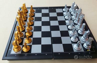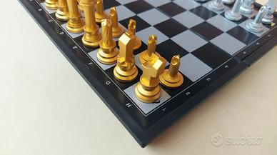 Il gioco da scacchi dove ogni singolo pezzo ha una leggera attrazione magnetica per il campo da gioco di 64 quadrati; il magnetismo lo rende più stabile mentre si gioca in camper, macchina etc.
