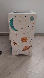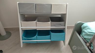 Scaffale Portaoggetti, 9 Scatole per Giocattoli e Libri, Organizzatore in Tessuto TNT, per Camera dei Bambini, Sala Giochi, Asilo, 62,5 x 29,5 x 60 cm, Motivi Spaziali, Bianco GKR33WT