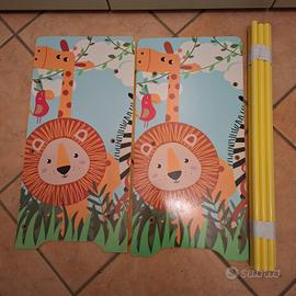 Vendo grazioso e pratico scaffale organizer aperto, a tema safari per cameretta bimbi, marca Livarno, per tenere in ordine scatole, cassettine, giochi, peluches, libri, calzature, ecc.