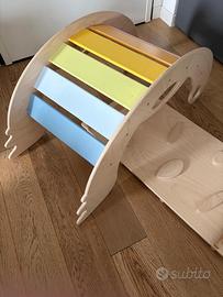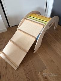 Set arrampicata per bambini in legno composto da scala ad arco e rampa reversibile.