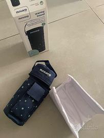 Grazie alla sua doppia funzione di scaldabiberon e borsa, è possibile scaldare il biberon in macchina alla temperatura giusta, e portarlo ovunque. warmy travel è molto leggero e comodo da trasportare grazie alla sua maniglia superiore che si aggancia alla carrozzina del bebè.