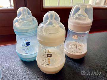 Opzionale set di 3 biberon in aggiunta: 1 marchio Chicco da 150ml con tettarella flusso 1, 2 biberon marchio Mam da 160ml con tettarella flusso 2. Tettarelle nuove usate pochissimo.