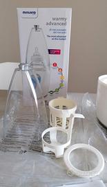 Scaldabiberon e sterilizzatore intelligente, due in uno. Per casa e auto, permette di riscaldare e sterilizzare i biberon in modo naturale utilizzando il vapore acqueo ad alta temperatura. Particolarmente indicato per riscaldare latte materno e i biberon di latte formulato, per sterilizzare accessori e scongelare. Il plus è la capacità di calcolare automaticamente il tempo di funzionamento richiesto, in base alla temperatura iniziale e al tipo e al volume degli alimenti, in modo da ottenere un riscaldamento rapido, uniforme e sempre alla giusta temperatura. Nella confezione è incluso anche un adattatore per l’uso in auto. Ritiro in provincia di Avellino o spedizione a carico dell'acquirente.