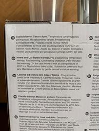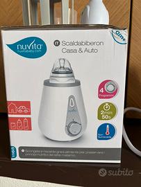 Scaldabiberon Nuvita modello 1165, utilizzabile sia in casa che in auto. Scalda o scongela il latte in pochi minuti ed è compatibile con i biberon delle marche più famose. Dispone di 4 programmi preimpostati. La confezione include tutti gli accessori: bicchiere, anello di chiusura, bicchierino graduato e adattatore per la presa dell’auto. Principalmente utilizzato come scaldabiberon di riserva, è perfettamente funzionante.