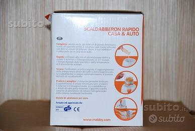 Scaldabiberon rapido casa auto Mebby, come nuovo; adattatore per varie misure di biberon; adattatore per carica in auto.