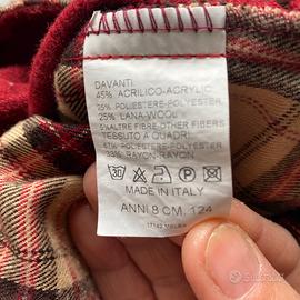 Scamiciato bimba 8 anni cm 124, tessuto acrilico e lana, colore tinta unita bordeaux sul davanti e a quadri scozzesi sul dietro