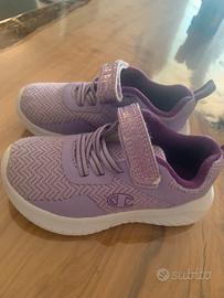 Scarpa bambina Champion, taglia 26, colore lilla, con chiusura a strappo.