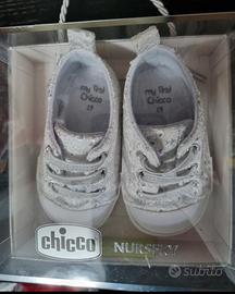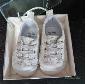 sneakers chicco per neonata bianche in tessuto sangallo. numero 19 .mai indossate.