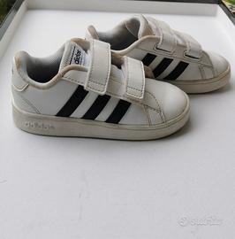 Scarpe Adidas 24 bianco e blu doppio strappo