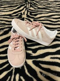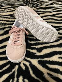 Scarpe indossate solo una volta. Colore rosa carne e l’esterno é leggermente vellutato. La scarpa sinistra presenta uam piccola macchia sulla suola. In ottime condizioni. Con la scatola originale.