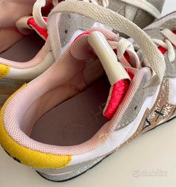 Ben tenute, suola praticamente nuova. Hanno un piccolo segno sul collo del piede e son oleggermetne consumate sul laterlae dei talloni.