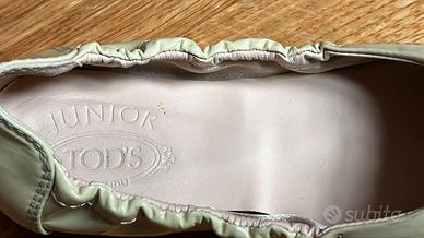 Ballerine della Tod's misura 33 da bambina di colore giallo chiaro, usate pochissimo come si vede dalla foto. Complete di confezione originale.