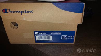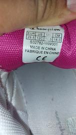 scarpe bambina champions n 29,5 di colore bianco con tratti di rosa e lucette funzionati perfettamente con scatola originale in ottimo stato usato pochissimo