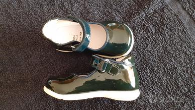 Vendo scarpe da bambina numero 20 in vera pelle, colore nero lucido, mai usate, chiusura con cinturino regolabile.