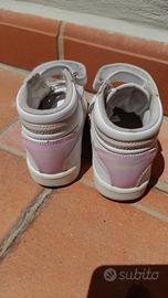 Scarpa sportiva bimbe con taglio high, dettagli traforati e fregio effetto metallizzato per un look street dal DNA sportivo. Pratica chiusura a strap.