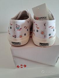 scarpe bambina superga n. 32 bianche con piccoli disegni, nuove con confezione originale