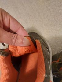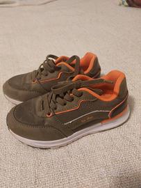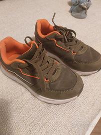 scarpe sportive da bambino numero 27, verde militare con dettagli arancione. lacci elastici