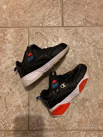 Scarpe bambino/a unisex Champions, colore nero con inserti rossi bianchi azzurri Misura 25 Con luci Ottime condizioni